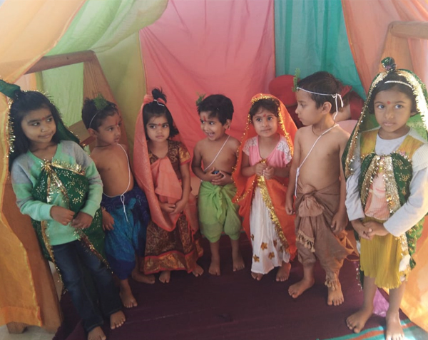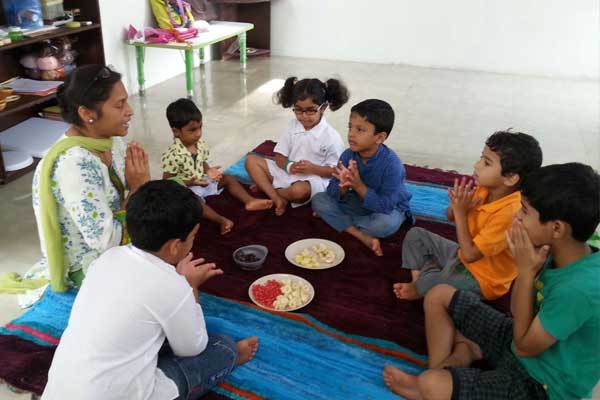 Grade Learning Centre: The transition into grade learning centre happens with the introduction of alphabet and numbers sensorial and qualitatively as the child progresses through the grades new subjects are introduced wherein the core academic subjects are taught (including math, language arts, history, geography), children receive instruction in specialty subjects such as Hindi, painting, nature studies, handwork, music, woodwork, choir and games/physical education.
